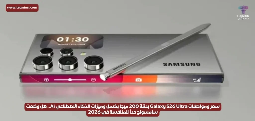 هاتفنا اليوم لا يُمكن القول أنه هاتف ذكي فقط، بل قمت بوصفه بـ”مركز القيادة” الحديث الذي يقوم المستخدم بحمله في جيبه، ولذلك أقدم لكم اليوم سعر ومواصفات هاتف Galaxy S26 Ultra الذي كسرت به شركة Samsung حاجز القيود مع إصدار هاتفها الجديد كُلياً، الذي قدم إلى أسواق الهواتف الذكية لُعدل المفاهيم التي تدور حول الذكاء الاصطناعي وميزات التصوير في نفس الحين، والآن سوف نُوضح لكم تفصيلاً عبر مِنصة “تقنيون” مراجعة هاتف سامسونج جالاكسي إس 26 ألترا.